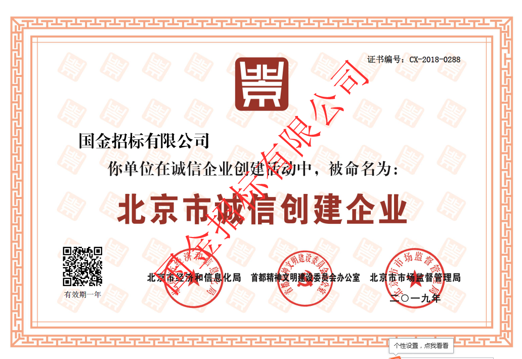 北京市诚信创建企业证书