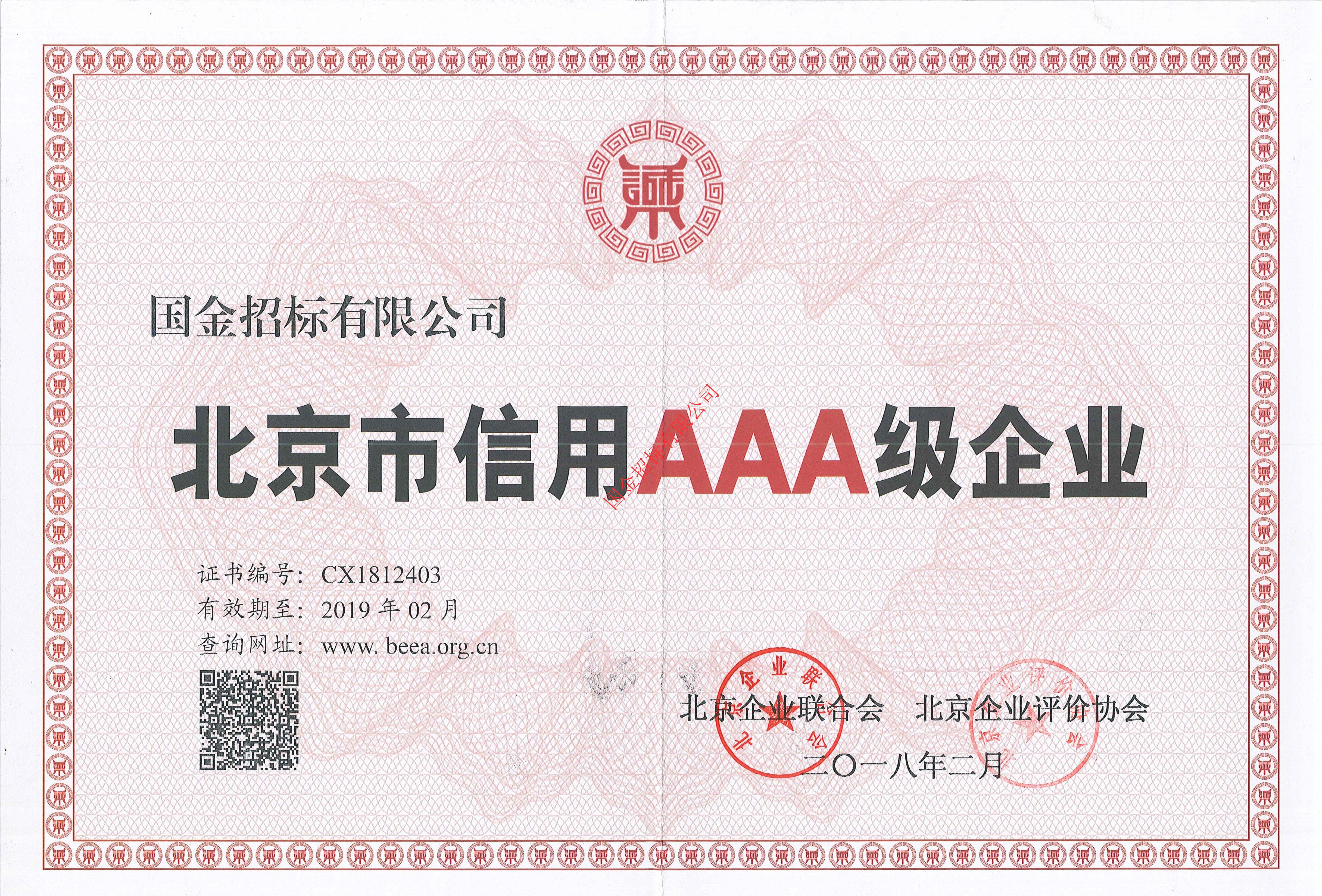 18年北京市信用3a